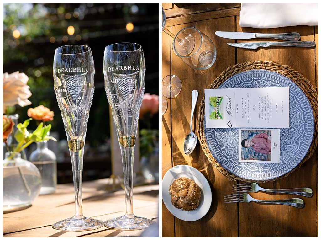 My Godfather, Tony, owns Belfast Crystal and made us two champagne glasses with the Finca engraved in them. It was very special seeing them set at the top table.