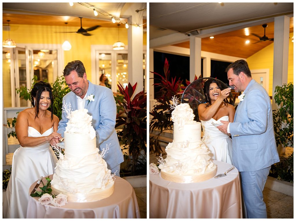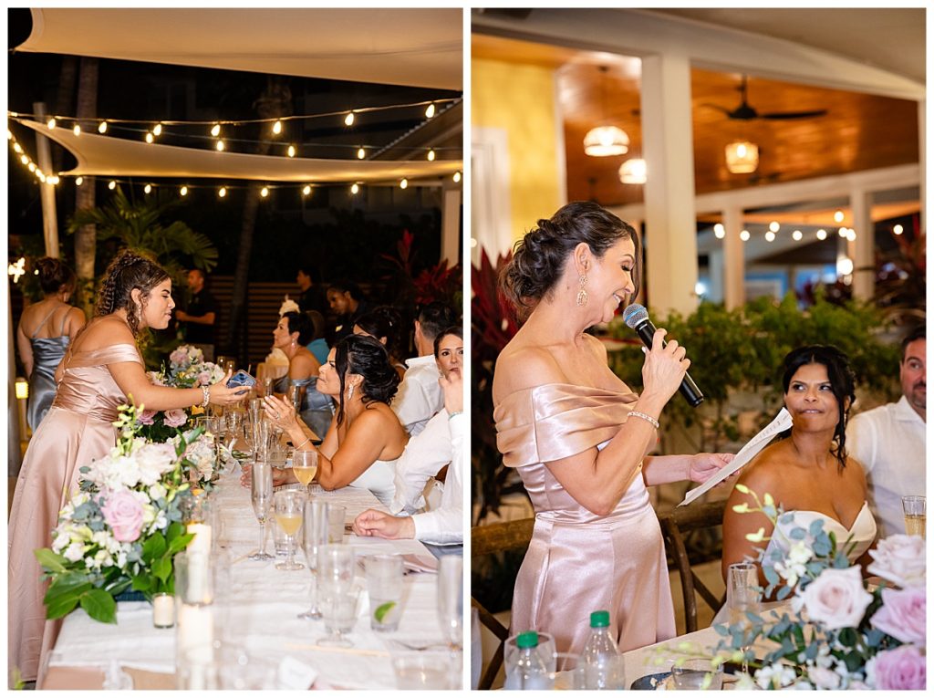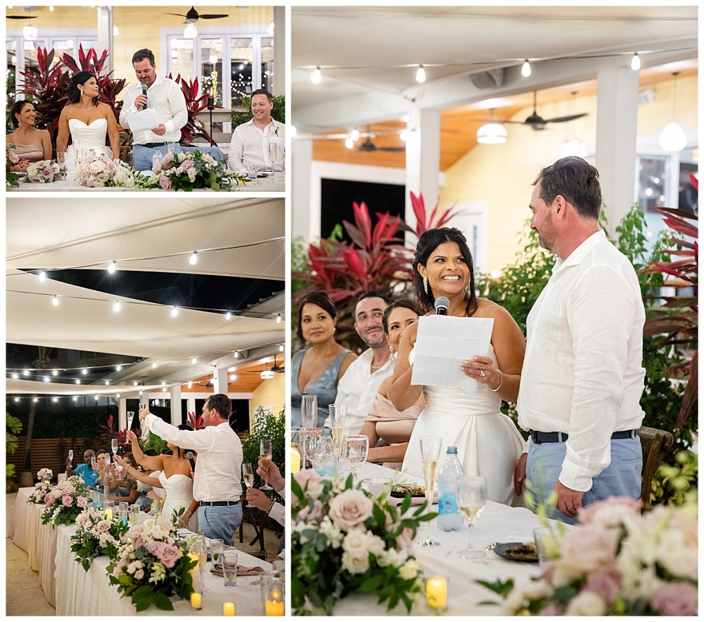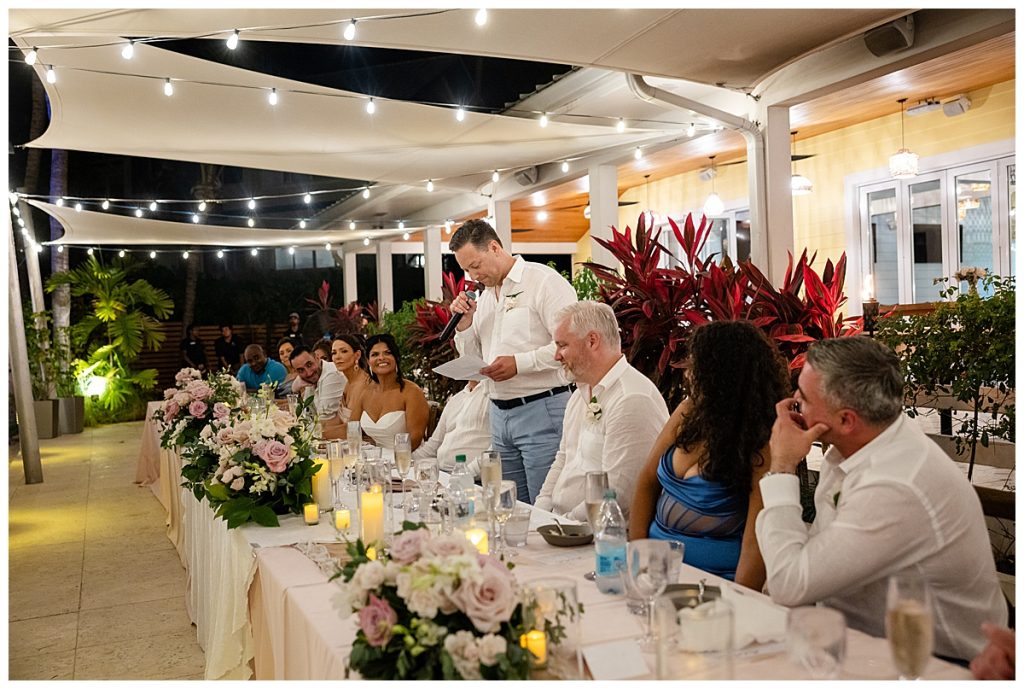 Rum Point Wedding of Dallas and Katherine dinner reception outside