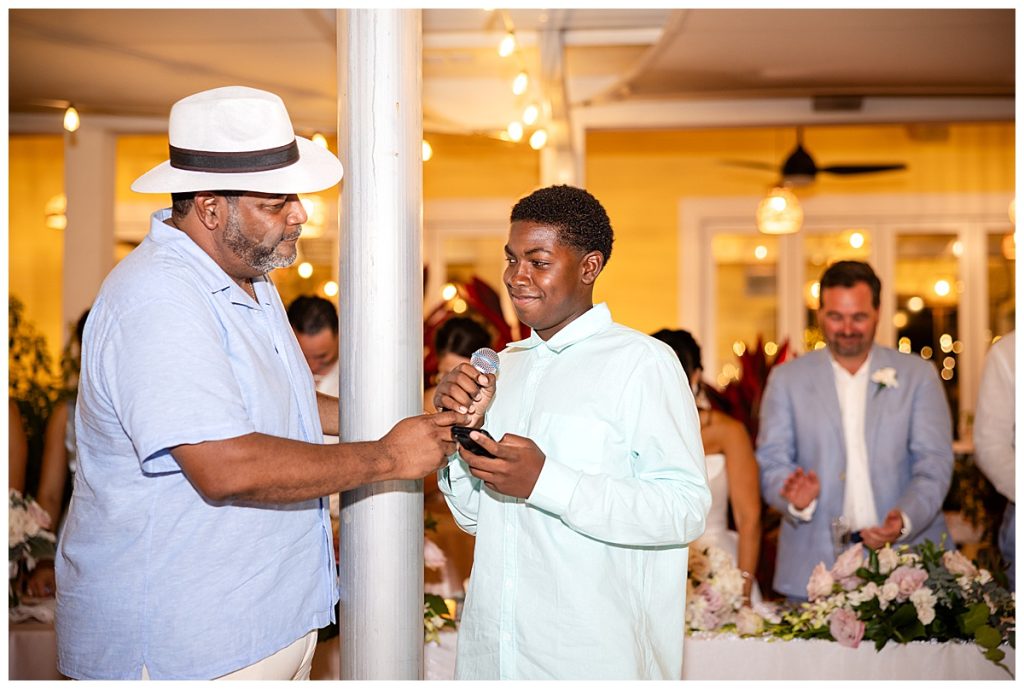 Rum Point Wedding of Dallas and Katherine entrance of bride and groom